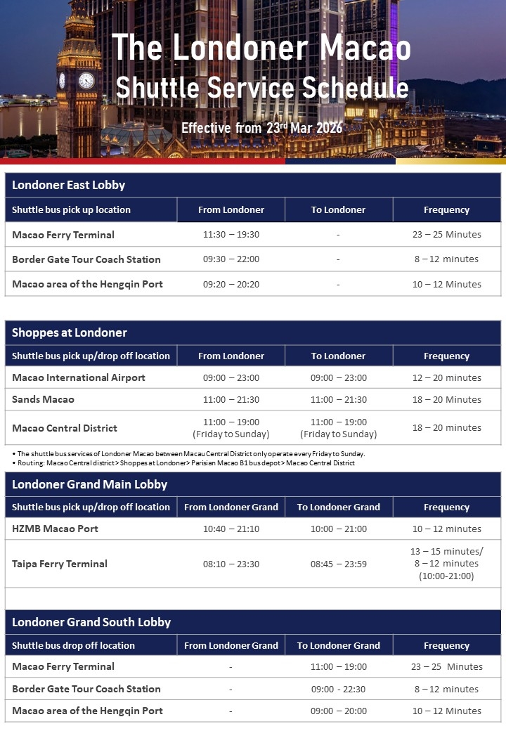 · The Londoner Macao無料シャトルバス時刻表