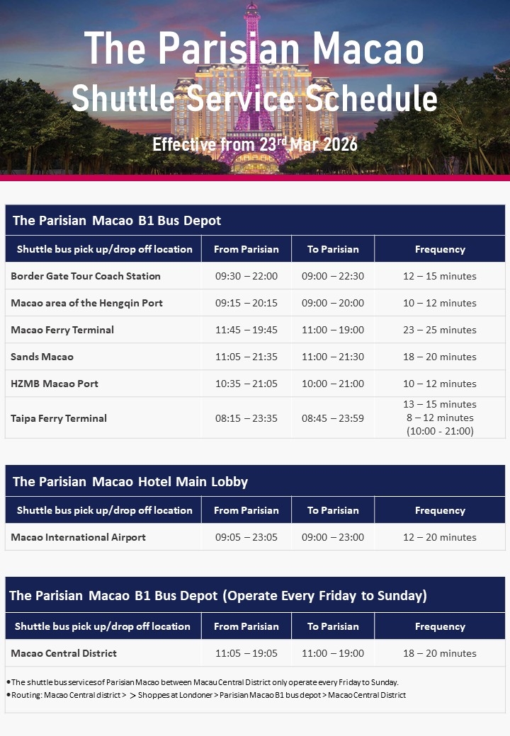 · The Parisian Macao無料シャトルバス時刻表