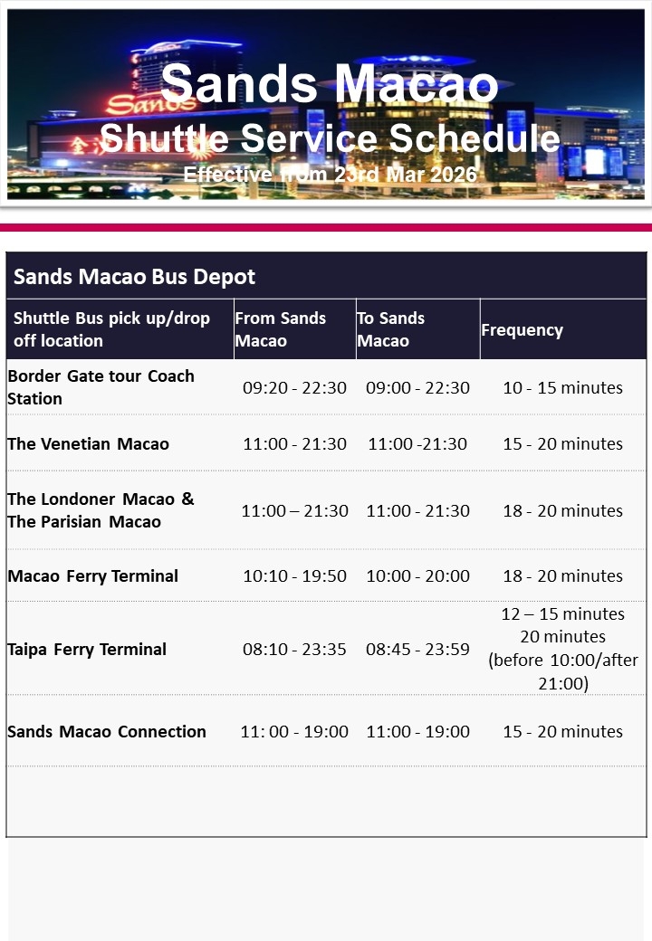 · Sands Macao無料シャトルバス時刻表