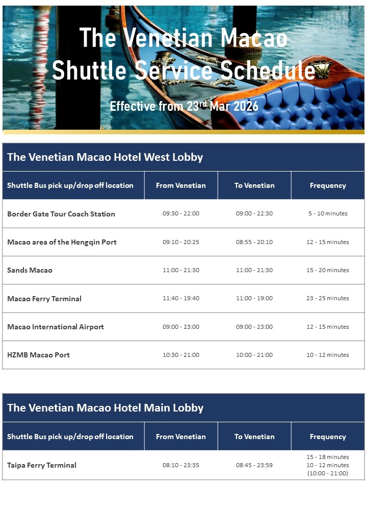 · The Venetian Macao無料シャトルバス時刻表