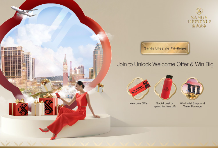 From now until June 21, 2026, become a Sands Lifestyle member to get MOP2,038 welcome offer pack, share & post social post or spend to receive limited-edition hot gift, complete missions to join lucky draw to unlock worth over MOP 1 million in rewards!